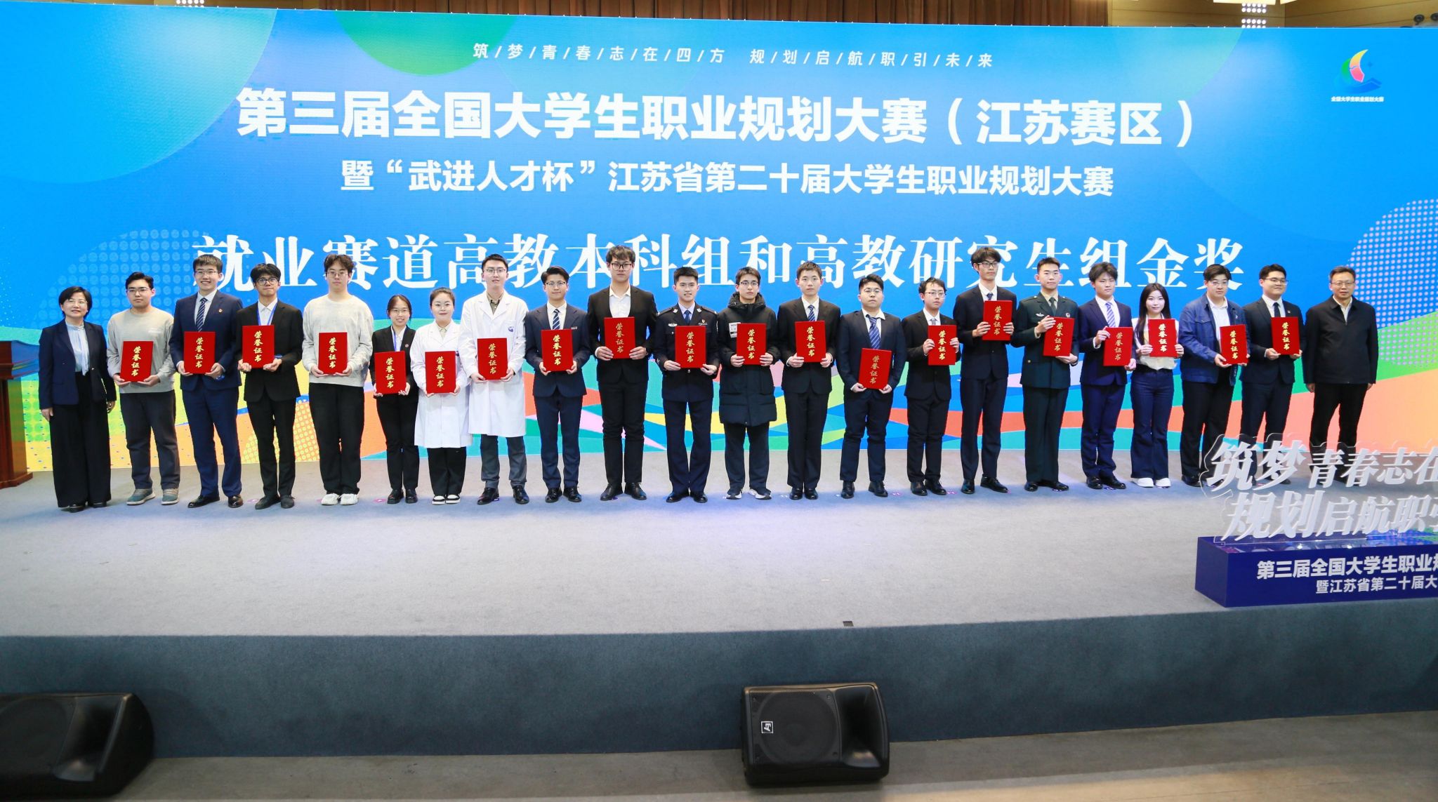 近日,第三届全国大学生职业规划大赛江苏赛区暨江苏省第二十届大学生职业规划大赛圆满落幕,教育部高校学生司(高校毕业生就业服务司)副司长吴爱华,江苏省教育厅副厅长陈艳、二级巡视员刘广鸣出席颁奖仪式。经过激烈角逐,我校参赛选手凭借扎实的专业基础、明确的职业目标和稳定的现场发挥,斩获“一金三银三铜”的好成绩,获奖层次及总数在全省高校中名列前茅。