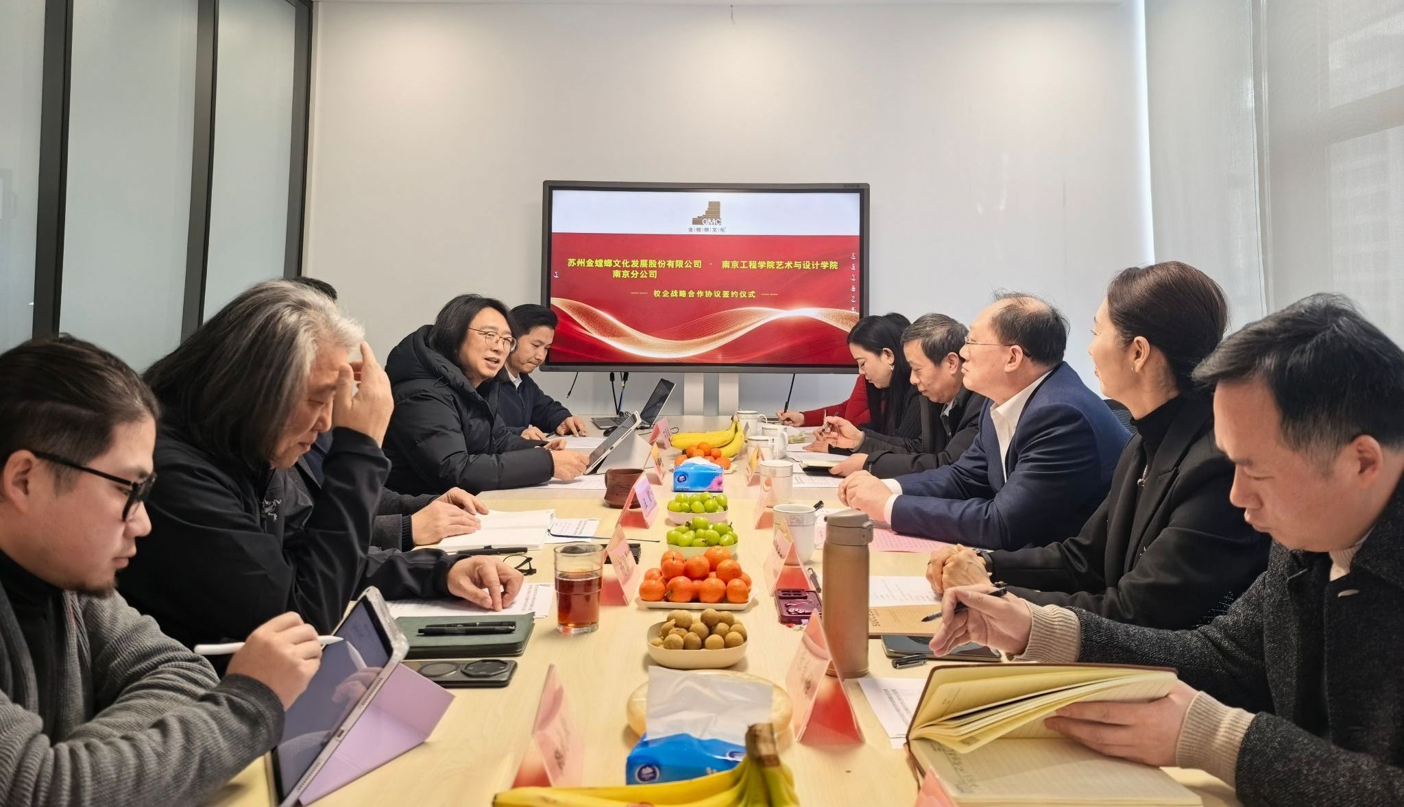 金螳螂文化发展股份有限公司副总经理、南京分公司总经理汪超等热情接待我校一行,并在座谈会上详细介绍了企业发展历程、业务布局与人才战略,期待与我校共同培养符合行业需求的高素质设计人才。