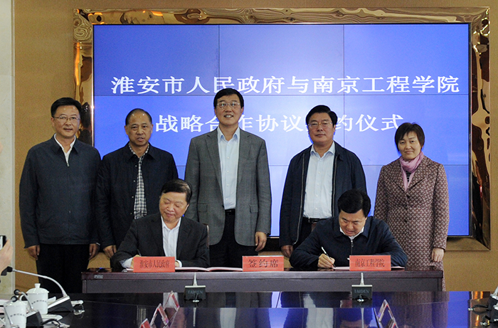 12月7日上午,淮安市人民政府—南京工程学院战略合作签约仪式在淮安市政府举行。我校党委书记史国君,院长孙玉坤,党委副书记、副院长陈德静,副院长曹雪虹,淮安市委书记姚晓东、市委常委、常务副市长戚寿余等出席签约仪式。淮安市委常委、秘书长李森主持签约仪式。
