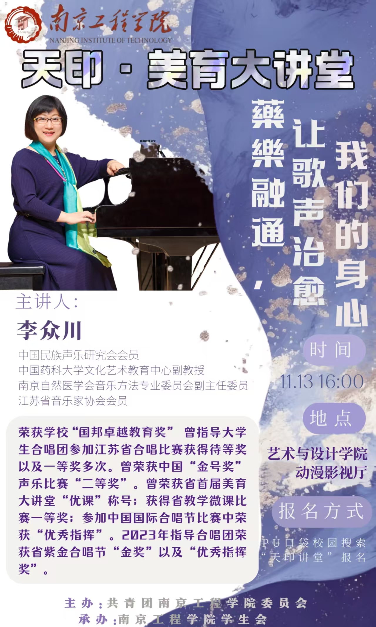 草药的“药”?音乐的“乐”?这两个看似毫不相关的事物在繁体字中却有着相似的字形。这是否可以说明音“樂”有“藥”用?不仅有白居易笔下的“今夜闻君琵琶语,如听仙乐耳暂明”,亦有孟浩然的“一杯弹一曲,不觉夕阳沉”。在让人焦躁的生活里,音乐可以抚慰人心。本期天印·美育讲堂特邀中国药科大学李众川副教授,开展“藥樂融通,让歌声治愈我们的身心”讲座,现将有关事宜通知如下: