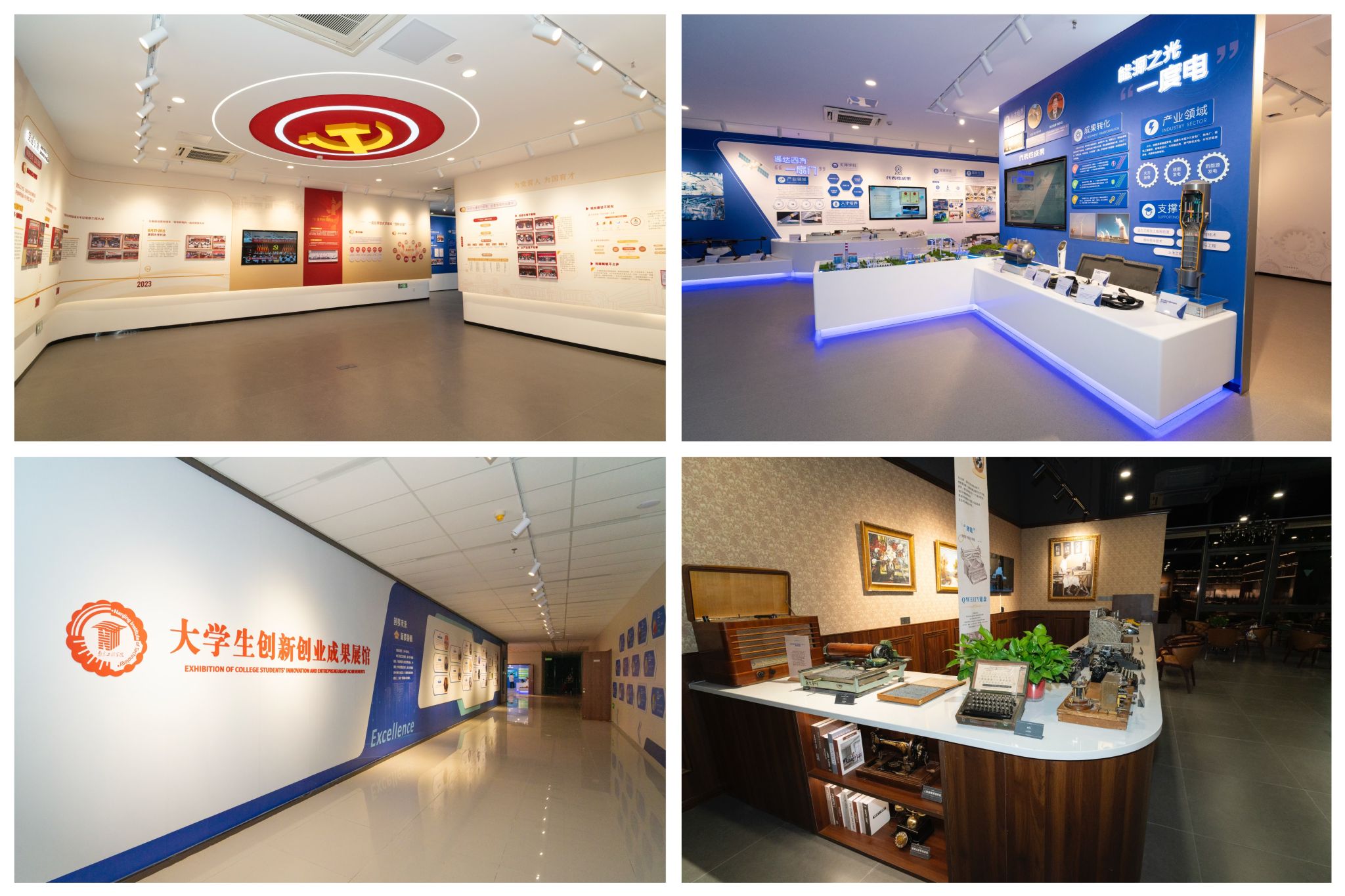 校史及事业发展成就馆通过“印记·岁月沉金”“经纬·时代筑新”“攀登·鸿程肇启”三大展区,以丰富实物、珍贵图片、沉浸式影像等形式,全面呈现其在党建引领、师资队伍、人才培养、科学研究、学科专业建设、合作交流、文明校园与校友工作等方面的突出成就;服务经济社会发展“四个一”特色成果馆聚焦“一张网、一度电、一台床、一扇门”学科专业体系,通过实物展品、沙盘模型、数字展示等形式,系统呈现学校在智能电网、新能源、高端装备制造、空天技术等领域的创新成果与产业贡献,彰显了学校服务国家战略与区域发展的特色优势;大学生创新创业成果展馆集中呈现国家级众创空间“天印梦工场”孵化成果、“挑战杯”全国大学生课外学术科技作品竞赛特等奖等代表性成绩,凸显学校在双创教育、学科竞赛与成果转化方面的实力;陆汉斌打字机博物馆通过展出其收藏的140余台古董打字机,系统梳理跨越三个世纪的发展脉络,特别呈现中文打字机的创新历程与其在历史、文化交流中的独特价值。