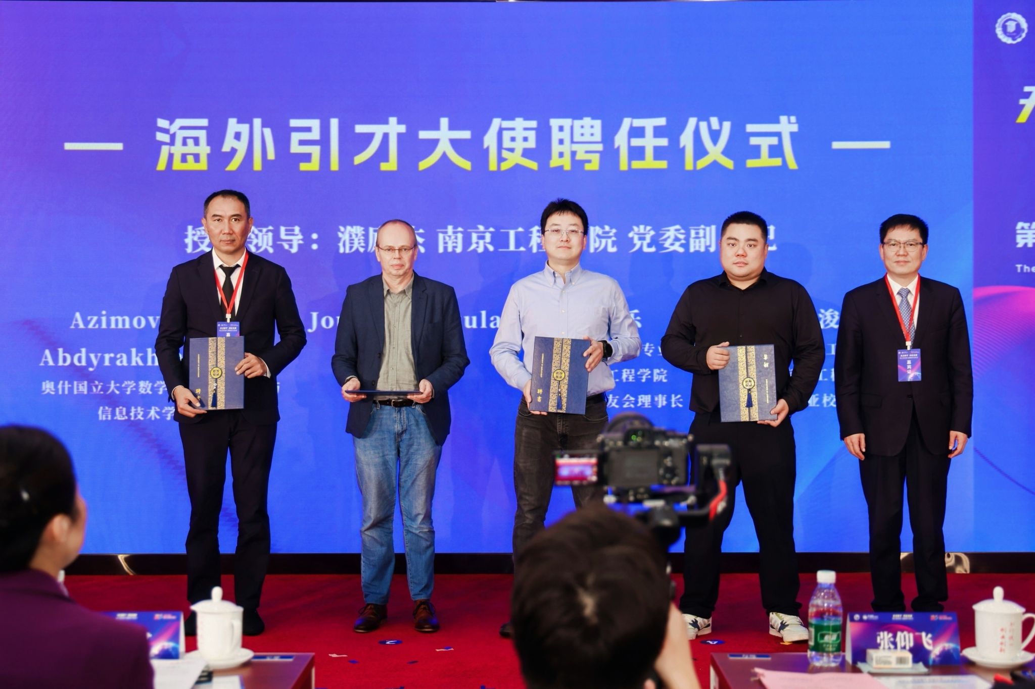 论坛期间,学校启动“海外引才大使”计划,聘任孙浚博、邓乐、Azimov Bektur Abdyrakhmanovich、Jouni Markkula四位学者为首批引才大使。同时,学校与致公党江苏省委、江苏省科学技术协会、江苏省苏豪新智集团签署“海外引智”协同创新共建合作协议,并与江宁区共同为海外引才基地揭牌。