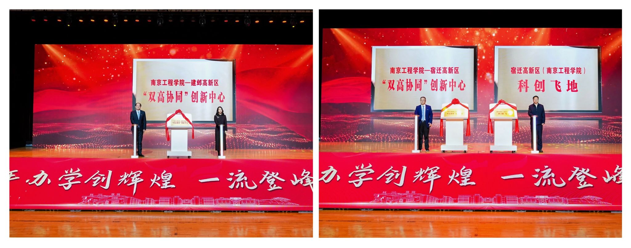 在与会人员的共同见证下,学校与南京建邺高新区、宿迁高新区共建的“双高协同创新中心”正式揭牌;同时,与江宁区人民政府携手打造的“天印湖科技创新示范区”也正式启动,共同构筑产教融合与区域创新的新高地。