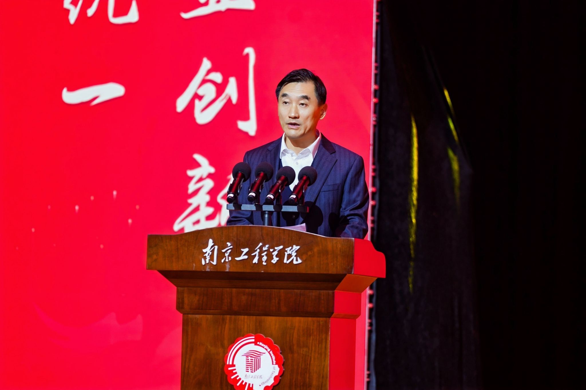 江涌代表江苏省教育厅向大会的召开表示热烈祝贺,向长期以来关心江苏高等教育及南京工程学院事业发展的各级领导、各界朋友表示衷心感谢。他希望学校全面贯彻党的二十届四中全会精神,以办学110周年为崭新起点,坚守育人初心,在培养时代新人上展现新作为;锐意改革攻坚,在建设一流应用型大学上迈出新步伐;深化产教融合,在服务区域发展上实现新突破,奋力开创“国内领先、特色鲜明的一流应用型大学”建设新局面。他表示,省教育厅将进一步加大关心支持力度,努力为学校高质量发展创造有利条件。