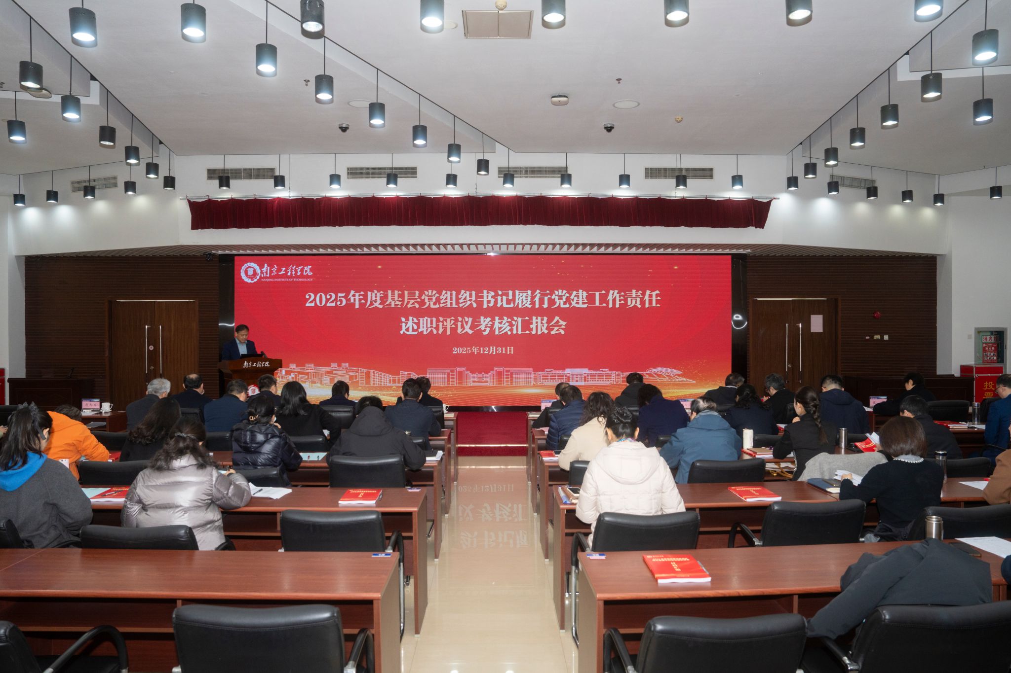 12月31日,学校在至勤楼·行政中心二楼多功能厅举行2025年度基层党组织书记履行党建工作责任述职评议考核汇报会。党委书记孙爱武,党委副书记、校长张仰飞等全体在校校领导出席会议,各二级基层党组织书记、机关职能部门负责人以及机关党支部书记参加会议。