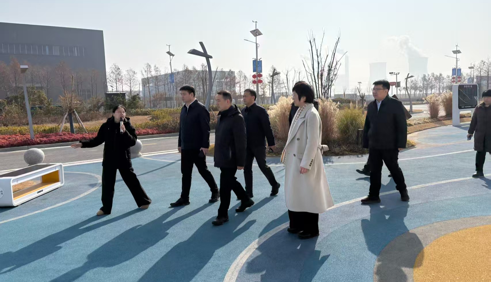 调研期间,我校一行实地考察了射阳港零碳社区,详细了解社区规划展示、绿色建筑建设及新能源示范应用场景,并听取了风电装备产业科技镇长团团长、我校陆旦宏教授的工作汇报。