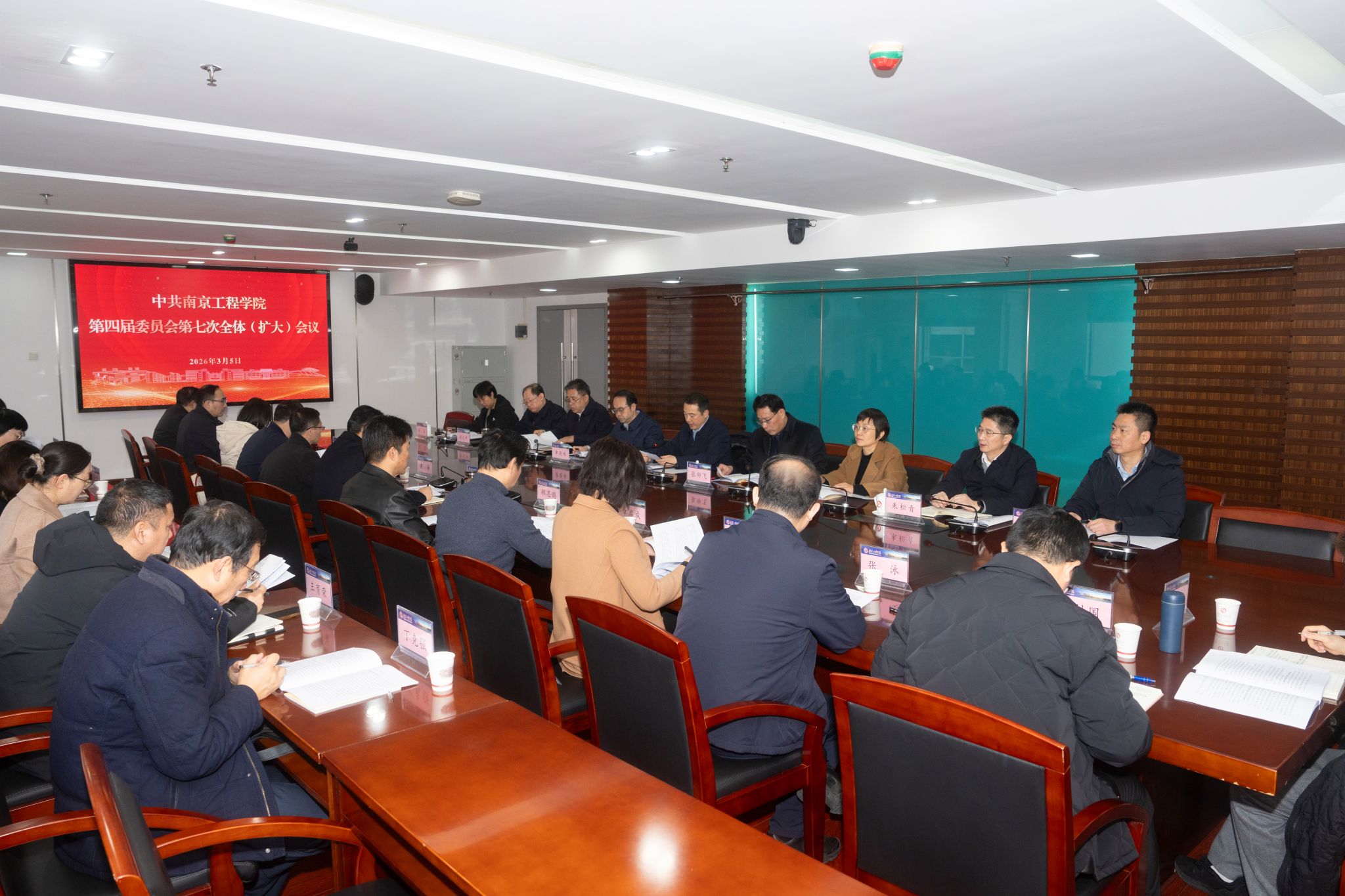 3月5日上午,中共南京工程学院第四届委员会第七次全体(扩大)会议在至勤楼·行政中心北303会议室召开。会议审议通过了学校党委2025年度工作报告和2026年度党政工作要点。党委书记孙爱武主持会议并作总结讲话,党委副书记、校长张仰飞等校领导班子成员、全体党委委员参加会议,纪委委员列席会议。
