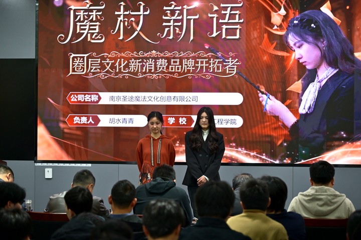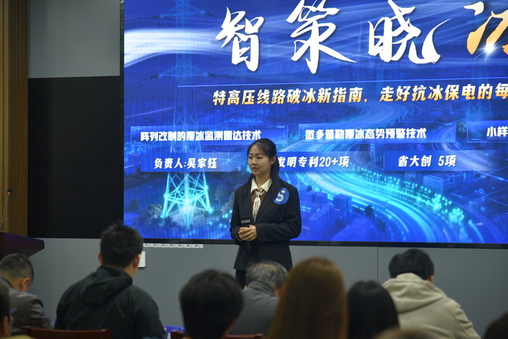 参赛的12支创业团队依次登台路演,无人机清洁幕墙、自动预警电线覆冰、喷涂道路后即可融冰、智能陪伴宠物、分级处置骚扰电话等创新课题尽展南工程学子的科创锋芒与青春锐气。