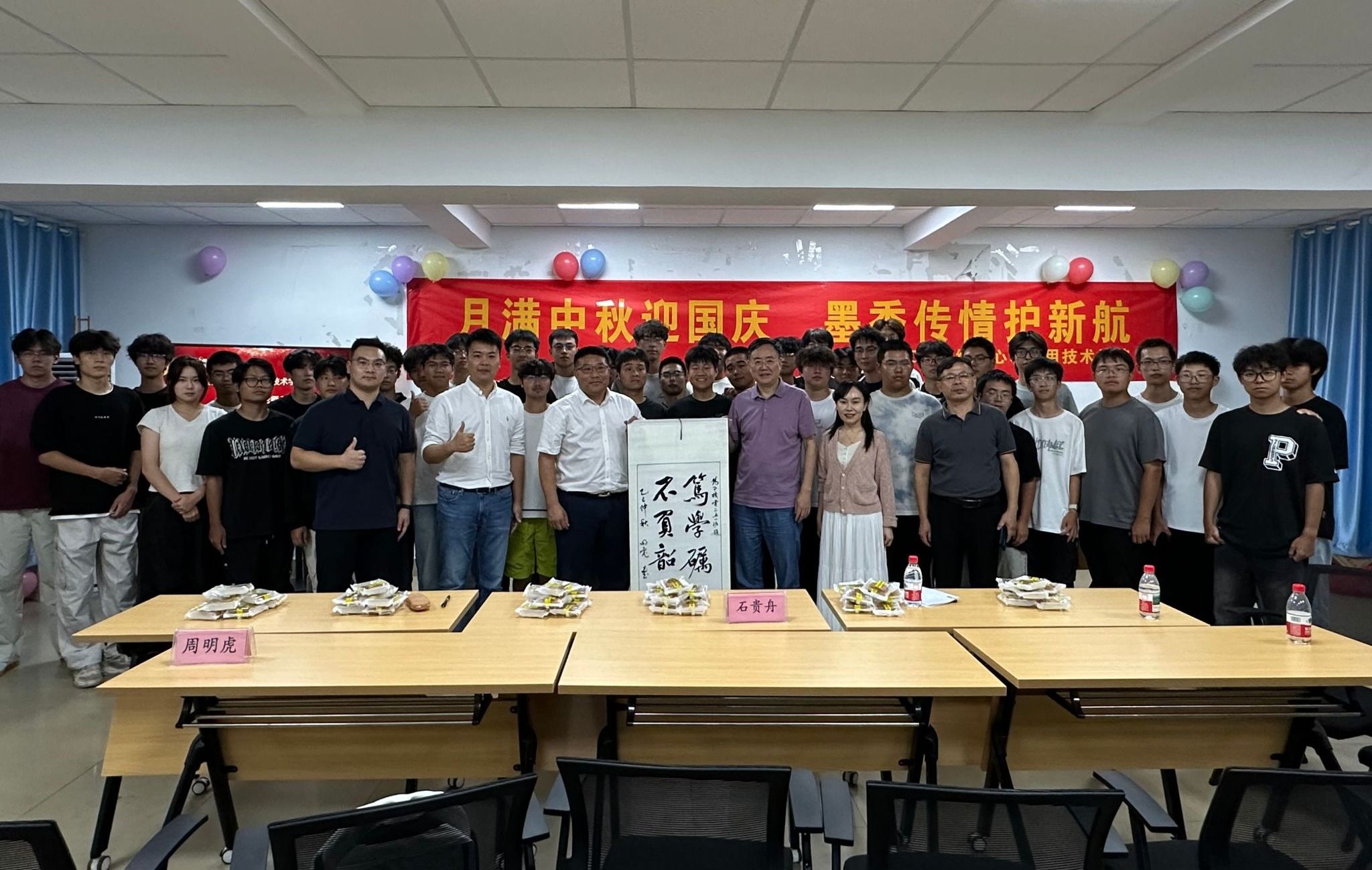会后,周明虎为大一新生题词“笃学砺能 不负韶华”,并和与会领导一起为新生分发月饼,勉励同学们在实践中增长才干,以青春之我、奋斗之我,书写精彩人生答卷。