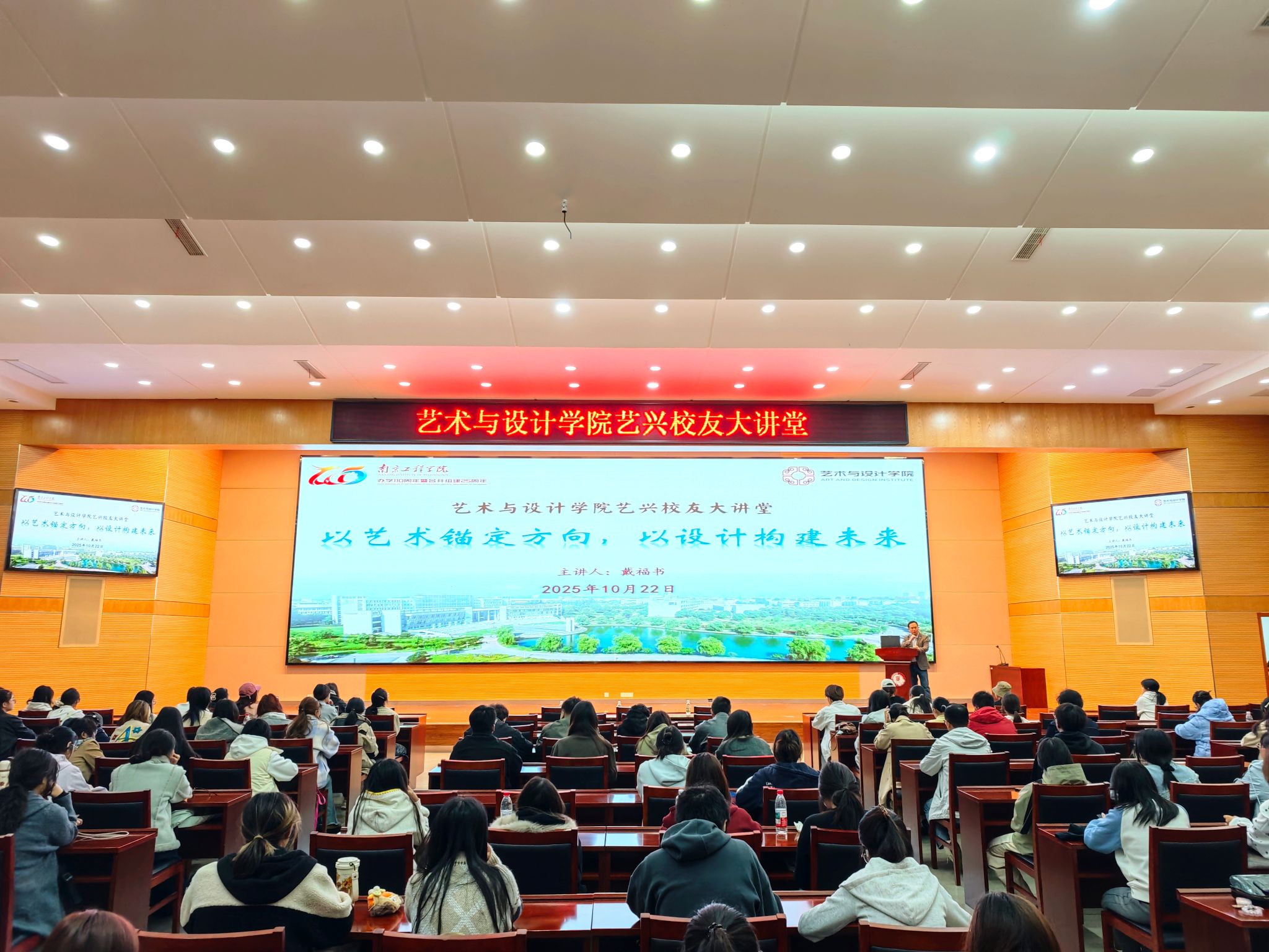 10月22日下午,艺术与设计学院“艺·兴校友大讲堂”首场活动在学院影视动漫厅举行。该院工美9581班校友、江苏华泽控股集团有限公司董事长戴福书受邀主讲。学院党委书记王雪飞、2025级新生及研究生代表共同参与,活动由党委副书记、副院长张自强主持。