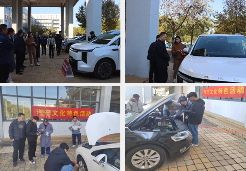新能源汽车展示区人气高涨,上汽大通、长安马自达带来的多款全新车型吸引众多教职工驻足,近距离接触中感受新能源汽车产业的前沿动态。“贴心汽车养护服务”同步开展,专业教师与学生志愿者组成服务团队,免费为教职工车辆提供故障检测、电池状态排查、冷却液液位检查、轮胎磨损评估等细致服务,耐心解答日常用车中的各类疑问,用专业力量为教职工的行车安全保驾护航。