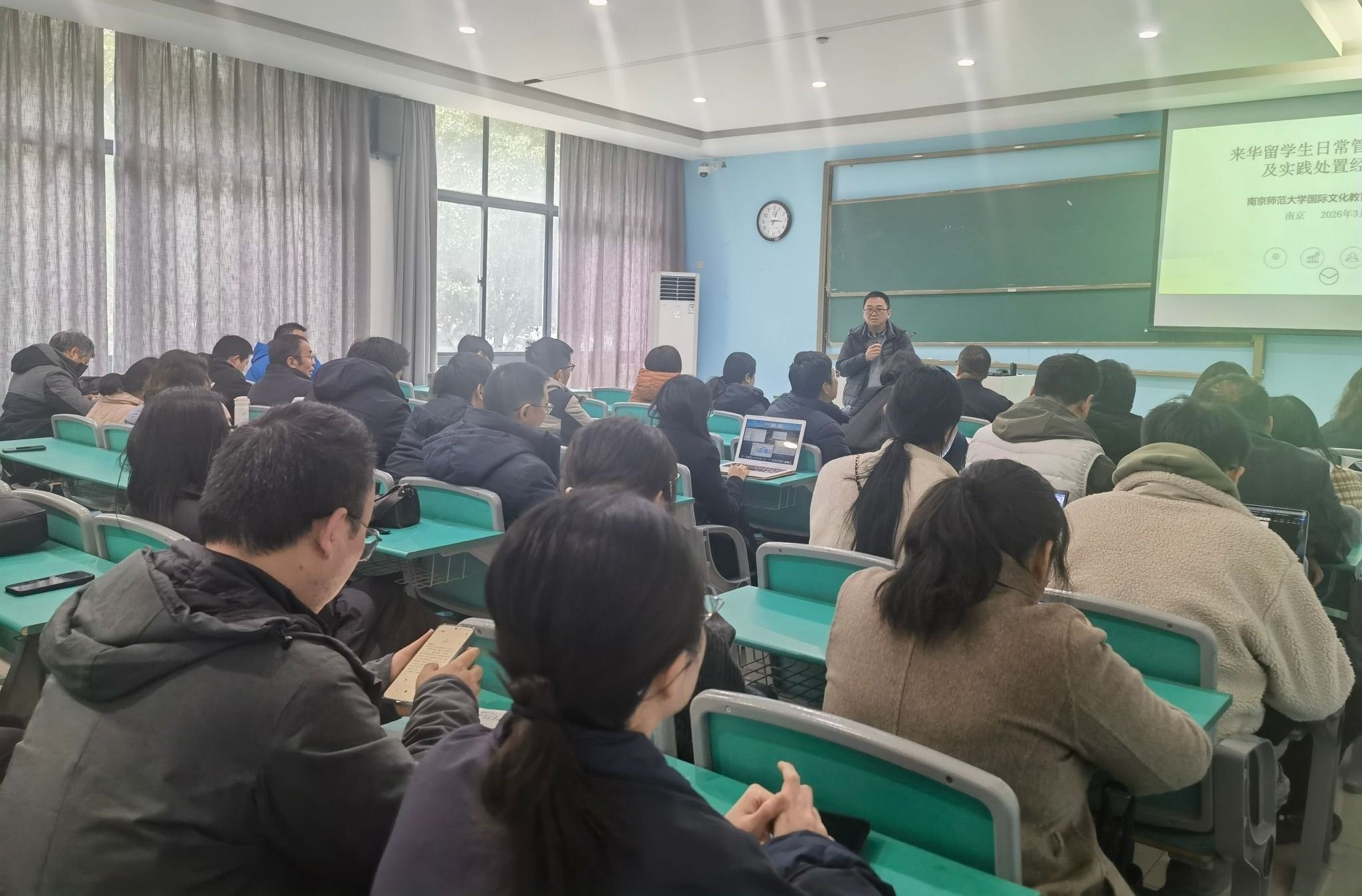 为进一步规范来华留学生教育管理工作,提升管理人员业务能力与服务水平,筑牢校园安全防线,3月18日下午,海外教育学院在经管楼C101举办来华留学生工作专题培训会。相关二级学院留学生工作负责人、课程教师和研究生导师参加。培训会由海外教育学院、奥卢学院党委书记乔小六主持。
