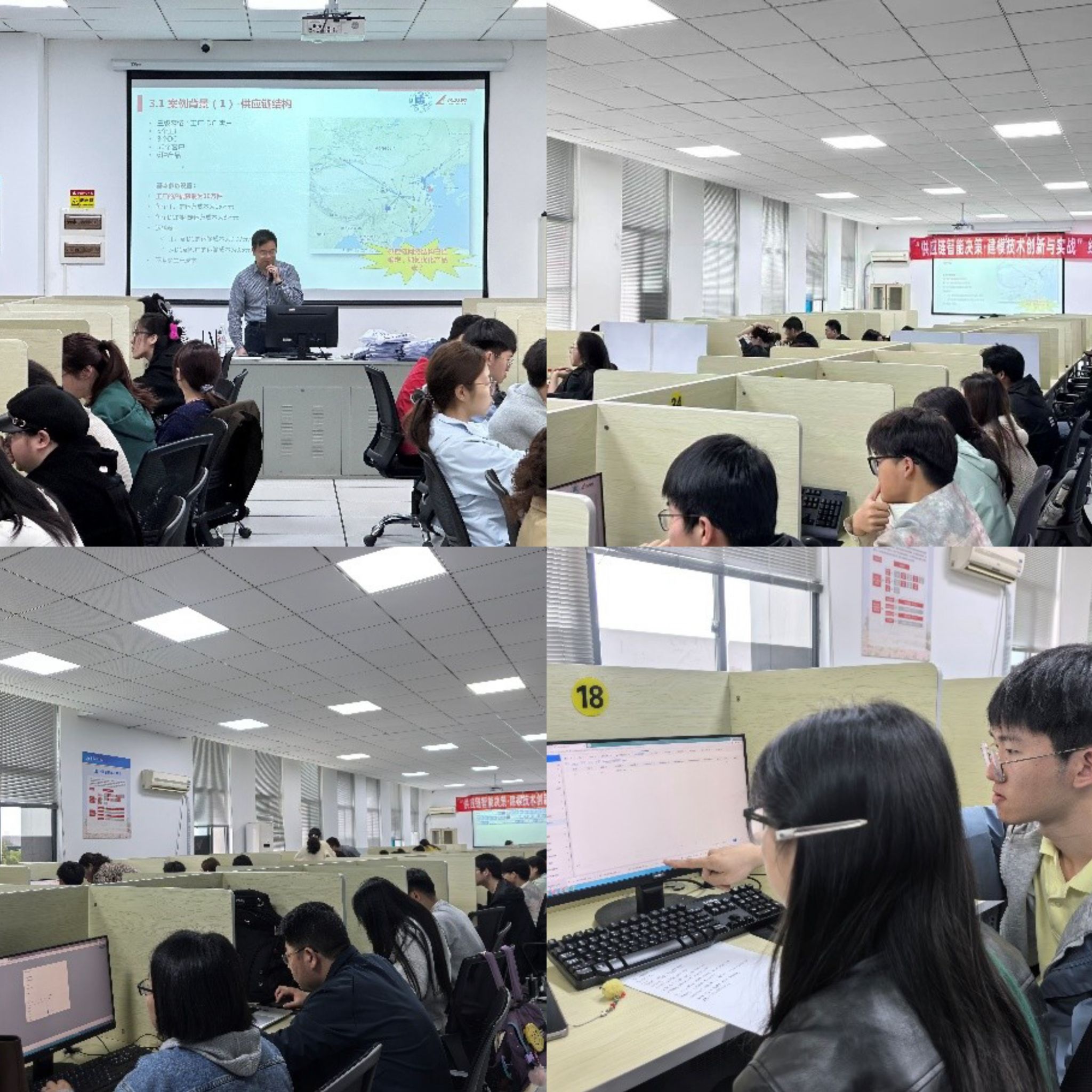 沙龙以线下集训形式开展,特邀广东工业大学董振宁教授授课,其课程围绕供应链网络优化与库存管理两大方向展开,涵盖设施选址、产能分配、供需关系设计,以及库存分布、补货策略、安全库存水平等内容,帮助参训师生理解智能决策在业务场景中的应用逻辑。现场学习氛围浓厚,交流互动积极。