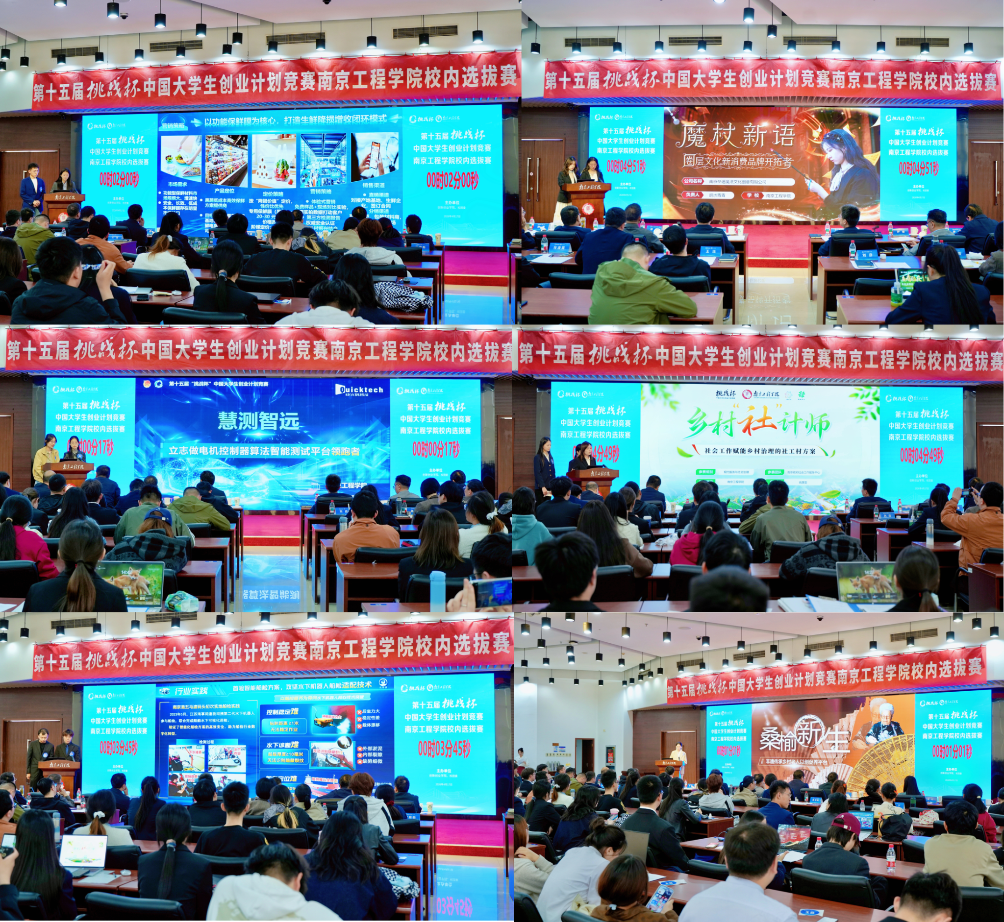 本次校内选拔赛由校团委与各二级学院协同组织,广泛动员、层层遴选,从135个申报项目中择优选出20个项目进入现场展示。比赛现场氛围热烈、秩序井然,各参赛团队精神饱满、从容自信,围绕项目创新亮点、技术优势、商业模式及社会价值进行了充分展示,生动体现了我校学子锐意进取、勇于探索的青春风貌。评委专家认真聆听、精准点评,从项目落地、市场拓展、优化提升等方面提出专业指导意见,为项目后续发展指明方向。